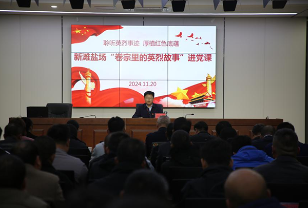 為進(jìn)一步引導(dǎo)廣大黨員銘記歷史,致敬英雄,堅(jiān)定理想信念,傳承紅色基因,近日,新灘鹽場(chǎng)以“黨員統(tǒng)一活動(dòng)日”為契機(jī),邀請(qǐng)濱??h人民法院和濱海縣新四軍研究會(huì)走進(jìn)新灘鹽場(chǎng)黨課課堂,開(kāi)展“卷宗里的英烈故事”紅色文化宣講。2024-11-26 -