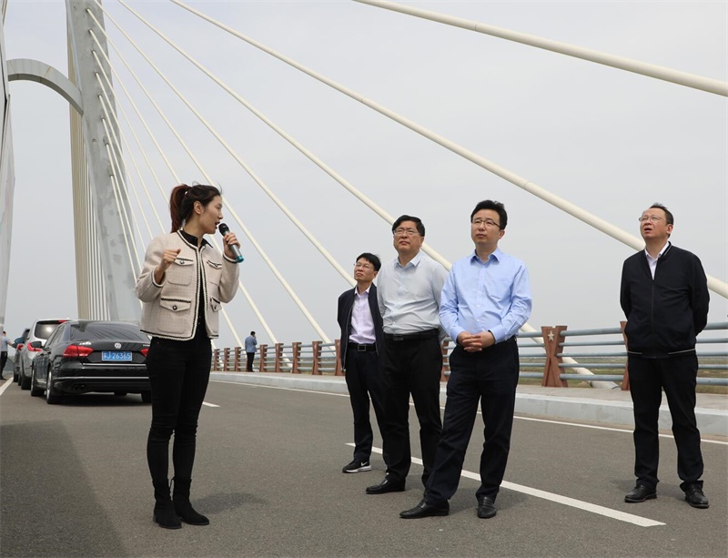 徐浩一行先后實(shí)地考察了濱海港城地塊、濱海港通用碼頭、寶武項(xiàng)目和金光項(xiàng)目現(xiàn)場(chǎng)。