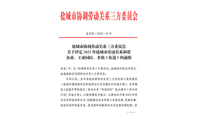 近日,鹽城市協(xié)調勞動關系三方委員會按照《關于開展 2023 年勞動關系和諧培育活動的通知》的工作部署,經各地協(xié)調勞動關系三方委員會培育、驗收、推薦,市協(xié)調勞動關系三方委員會研究決定,評定鹽城市灌東經濟開發(fā)投資有限公司為 2023 年鹽城市勞動關系和諧企業(yè)之一。2024-01-08 -